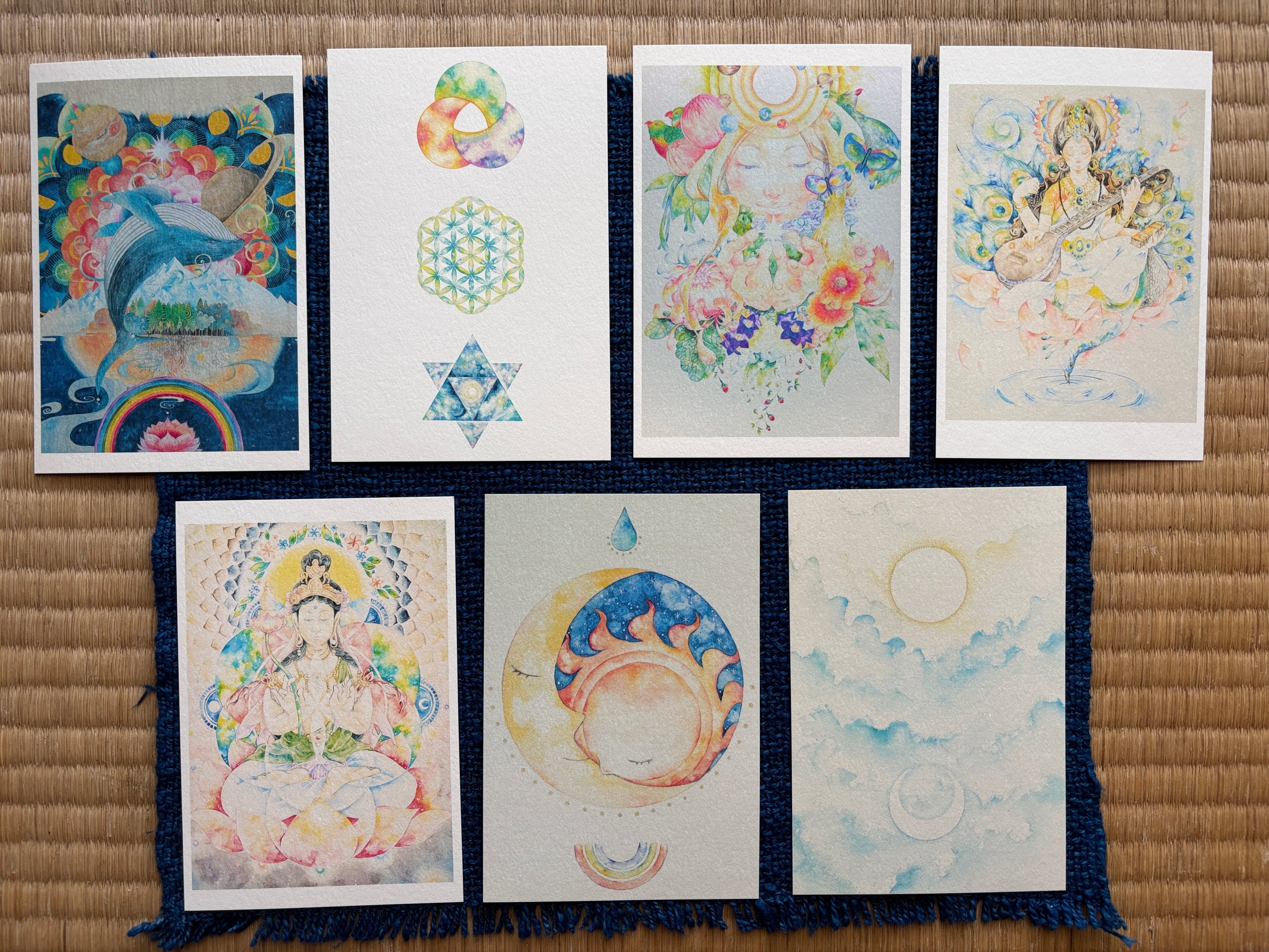 7枚セットのポストカード集です。 1枚の袋に7枚のポストカードが入った状態でお送りさせて頂きます。 ポストカード1枚ずつの個包装をご希望の場合は購入時のメッセージにてお知らせ下さい。